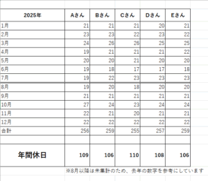 年間休日105日以上の目標クリア 建設業の年間休日